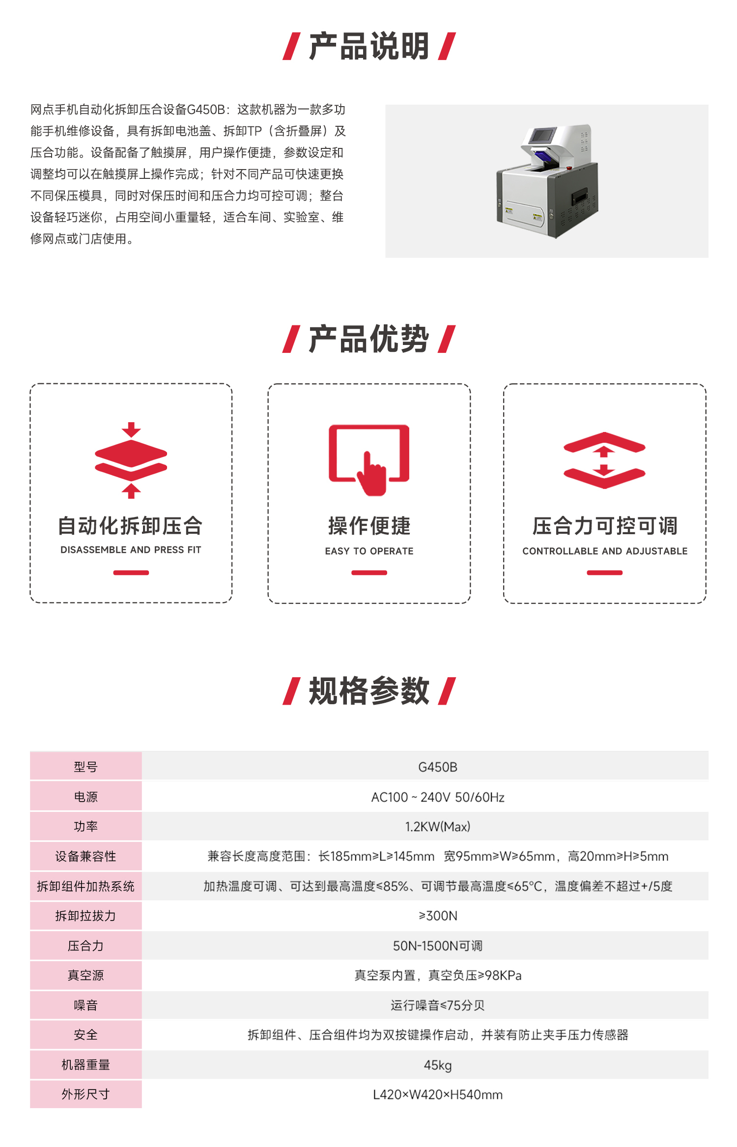 G450B 網(wǎng)點(diǎn)手機自動(dòng)化拆卸壓合設備